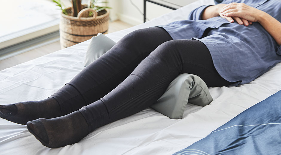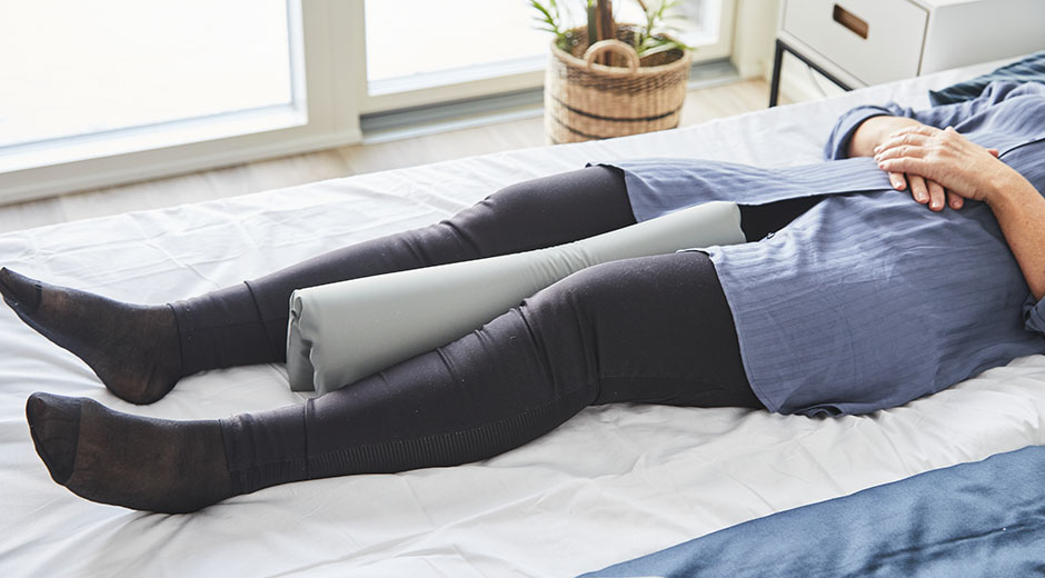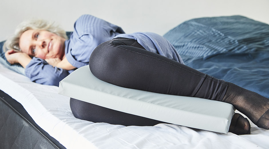 Bij positionering in zijligging kan de Pad Low gebruikt worden als kniekussen. Het wordt dan gevouwen of plat tussen de knieën geplaatst. Pad Low biedt als kniekussen een goede verlichting en voorkomt dat de knieën elkaar raken. Het positioneringskussen kan ook tussen de voeten worden geplaatst, waar het verlichting biedt van botuitsteeksels bij de enkels.