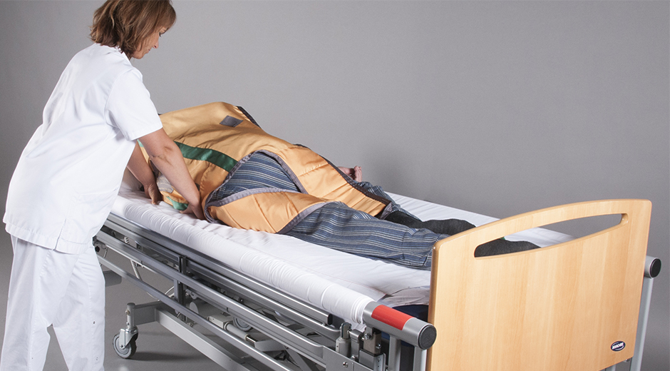 - Een cliënt in buikligging te plaatsen of terug naar rug- of zijligging